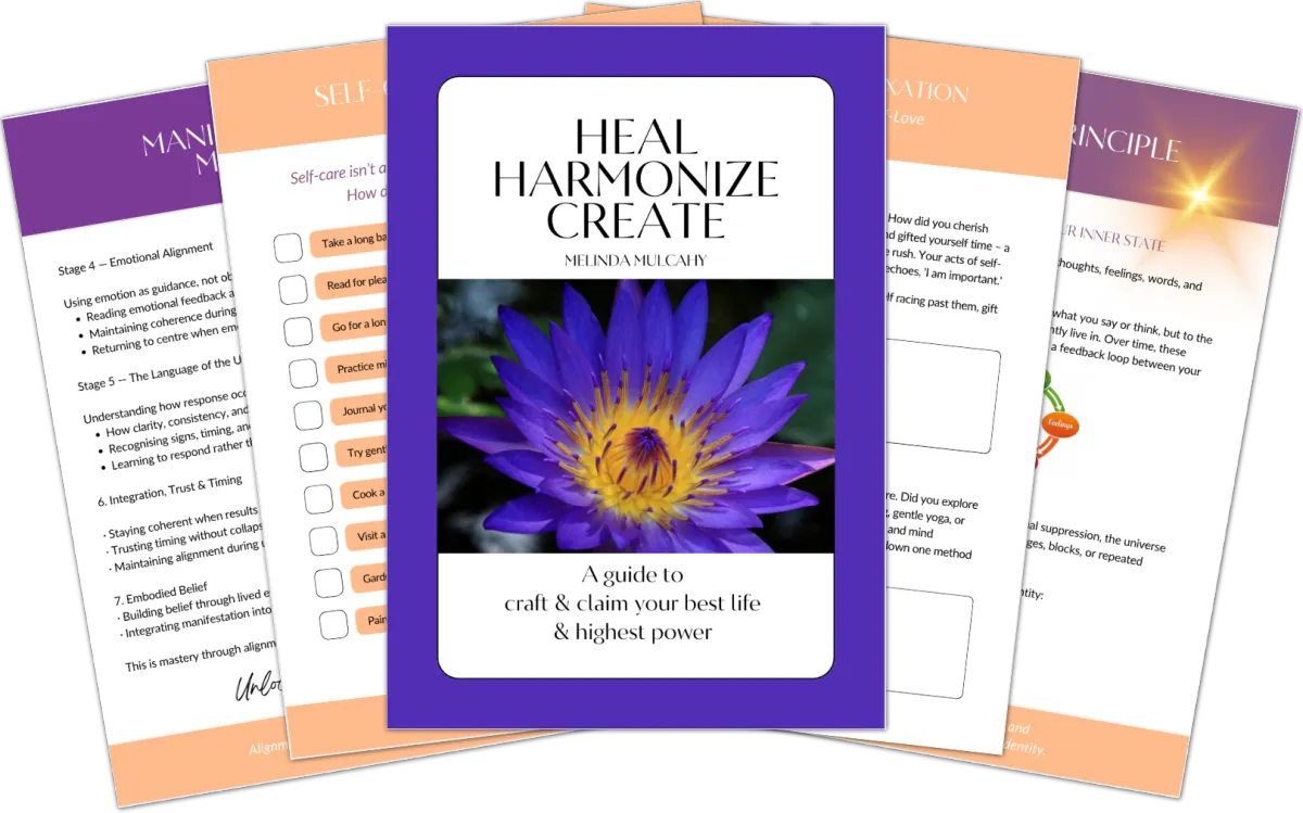 Melinda’s Signature LIVE Membership is a six-month, deeply supported mentorship designed to help you master manifestation in a grounded, sustainable way — without burnout, doubt loops, or overwhelm. Through weekly live transformational sessions, personalised guidance, practical daily tools, stunning audibles and real-time decoding of signs and patterns, you’ll rewire belief at the level it actually forms: lived experience.
